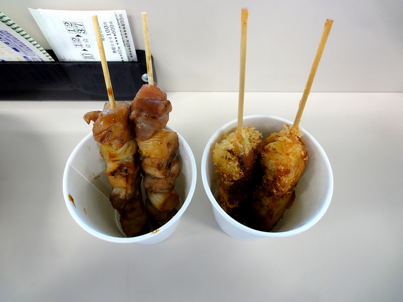 串焼きは、間に挟んであるネギと相性がバッチリ(当然っちゃ当然ですけど)で、甘みの少ないタレが個人的に好印象。あと串カツは、フライにするとマグロが「肉」っぽい味に感じられるのが不思議でした。(それにしても、酒やビールや焼酎が欲しくなるお味だこと…。)