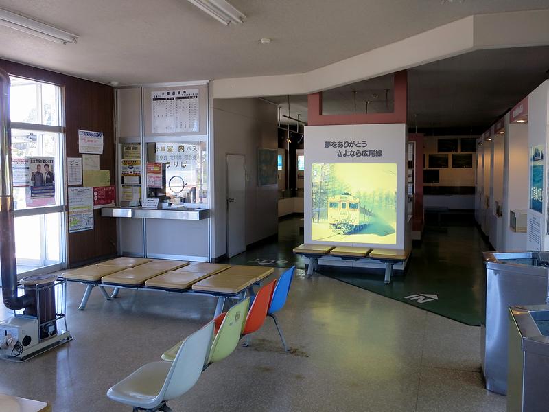 【切符売り場と広尾線鉄道記念館展示スペース】