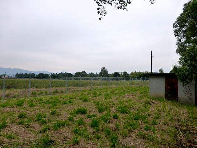 ブロック塀の向きから、道路は元の厩舎団地内に作られた事が判るかと。また、この付近は一部が有刺鉄線付きのネットフェンスで区切られていました。
