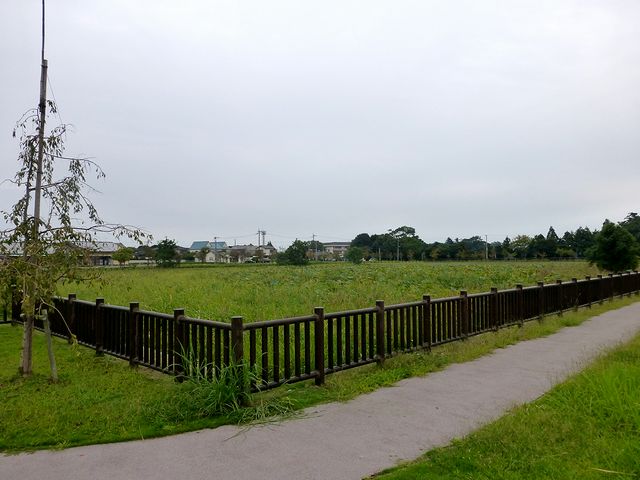 それで、カーナビを頼りにその跡地に到着したのは午後4時をだいぶ回った頃。で、その跡地は現在、大貞総合運動公園として整備されている真っ最中なのですが、部分的には立ち入れるところも多いようなので、クルマでちょこちょこ移動しながら見て回ることに。