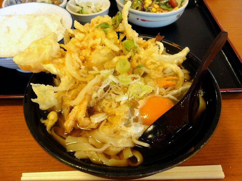 天ぷらうどん(氏家うどん) 500円 + 生玉子入り 50円