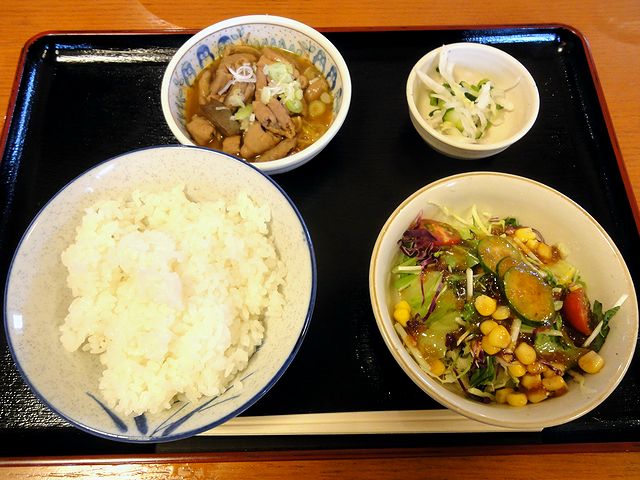 セルフのお茶を啜りながら待つこと少々で登場したこちらの品々。まずパっと見、うどんが平べったいのがわかったのですが、口に入れると、ピロピロチュルチュルっとした啜り心地と柔らかめな食感が特徴的というか。個人的に柔らかめのうどんも好きなこともあり、これは結構いけるんじゃないでしょうか。それとつゆは北関東っぽい濃口醤油が効いたもので、かき揚げはソフトな食感の物でした。あと、一緒にいただいたSセットですが、モツ煮は味付けが濃いめでご飯が進みまくり。ですがうどんが結構たっぷりと埋蔵されていたので、最後は少々苦しくなってしまったというか。