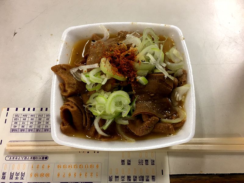 それで志ら井に続いてこちらでもいただいたのがにこみ。で、こちらのは、なんと具が牛モツのみ!(っていうか、他に入っていた記憶がない。)そしてお味の方も、味噌ベースのこっくりとした味わいで、前述の志ら井さんと甲乙付けがたいというか、多分、どちらのお店にも熱烈なファンが居るのでは、という感じです。