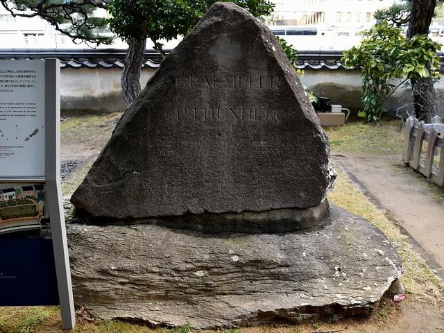 表門の近くにあったのが、商館医として来日したシーボルトが、同じく商館医として来日し日本の研究を行ったケンペルとシュンペリーの功績をたたえて建立した記念碑が。