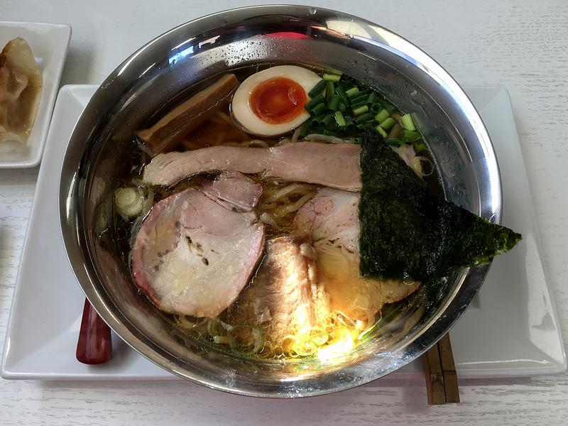 こちらは、同行の家人がいただいた品。味付けは黒醤油と白醤油味が選べる中、白のほうにしてみたのですが、家人的にはもう少し醤油の風味が欲しいそうで。で、私も例によって味見させて貰ったのですが、個人的にはこちらのお店ならでは感もあるので、これはこれで良いと思うんですがね。あと、具もチャーシューも私がいただいた「極み」と同じ構成でしたし、更にはワンタンも、白河系に多い気がするおしるし程度の量では無く(もっとも、個人的に白河系の餡は、手打ちの皮こそがメインだと思っているので、それはそれで好きなんですが。)しっかりと入ったのもお得感があって良かったです。