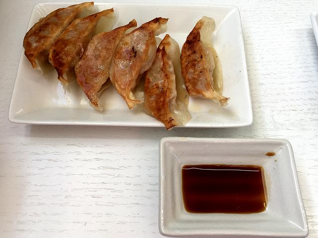 こちらは、一緒にいただいた品。小皿にあらかじめ醤油が入れられていたので、味付けはそれ前提ですかね。で、試しにまずはそのままいってみたところ、薄めの皮に包まれた餡は結構ジューシー。風味的に、肉汁というよりも野菜汁という感じでしょうか?それと試しておいて何なのですが、味付けは薄めなので、個人的にはやはり醤油を付けた方が美味しくいただけました。