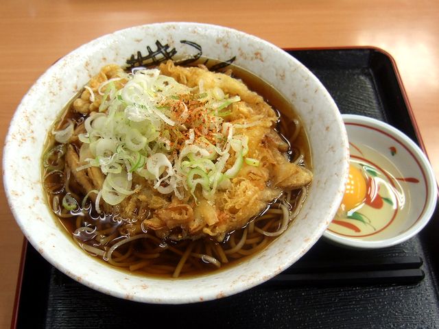 海鮮かき揚げそば 630円 + 生たまご 40円