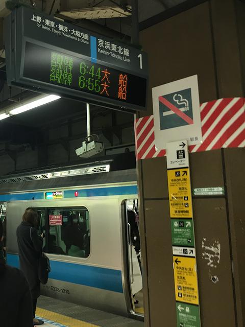 新幹線は6時38分、定刻に大宮駅到着。予定では6時49分発の京浜東北線南行大船行きに乗り換える予定だったのですが、1本早い6時44分発の列車に乗ることが。椅子にも座れラッキーと思ったのですが、これが罠だったというか。まずは大宮駅を出ると駅ごとに乗客が増え、程なくして周りが見えない状況に。で、この列車に乗った場合、武蔵野線に乗り換える南浦和駅に着くのは6時56分なのですが、何と勘違いしたのか、それとは別の時刻を到着時刻と思い込んでしまい、「おかしい」と気付いた時には、列車は川口駅へ到着するところ。混雑もあってすぐには降りられず、次の赤羽駅から引き返すことになってしまいました。