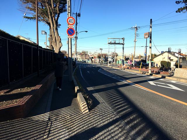 列車を降りた後は、当日売り指定席の整理券を貰うために中山競馬場の中央門を目指します。で、この際、ナッキーモールを通るとたどり着けないので、千葉県道59号市川印西線を北方十字路(中山競馬場北側にある交差点)目指して歩くことに。というわけで「中山競馬場へは専用改札口から」という駅構内に流れる案内アナウンスは無視して一般の改札口を出、かなり狭い歩道を急ぎ足で西南西に進むこと10分弱で北方十字路に到着。ここで道路を横断し、中山競馬場の正門前を通り過ぎ、ようやく中央門に到着しました。