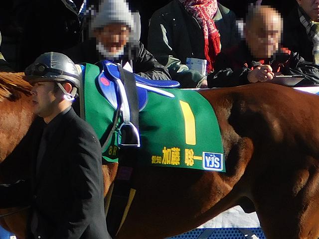 で、このレースはパドックから見ていたのですが、ゼッケンが、昨日のファイナルラウンド大井と同じく、緑字に黄文字、右側に馬名、左側にレース数と所属、騎手名そしてYJS(ヤングジョッキーズシリーズ)ロゴマークという特別製。パドックを取り囲む観客数も、ちょっとした重賞競走並みでした。