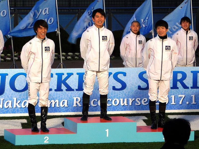 この結果、昨日の大井第1戦で勝利し暫定首位で中山に入った臼井健太郎騎手(船橋)が最終的に52ポイントとなり逃げ切って優勝!2位は第1戦5着、第2戦2着とこの中山の2戦で追い込む(第2戦はレースでも追い込んだ)も1ポイント足らず51ポイントとなった岩崎翼騎手(JRA栗東)。3位は中山第2戦で勝利して48ポイントまで伸ばした森裕太郎騎手(JRA栗東)となりました。以下は、4位が43ポイントで中越騎手(川崎)、5位が40ポイントで荻野極騎手(JRA栗東)、6位が38ポイントで保園騎手(浦和)、7位が34ポイントで鈴木裕騎手(岩手)、8位がポイントで34渡邊竜騎手(笠松)、9位が32ポイントで横山武騎手(JRA美浦)、10位が30ポイントで加藤騎手(愛知)、11位が17ポイントで菊沢一騎手(JRA美浦)、12位が11ポイントで小崎騎手(JRA栗東)、13位が10ポイントで藤田騎手(JRA美浦)、14位が8ポイントで栗原騎手(金沢)という結果です。