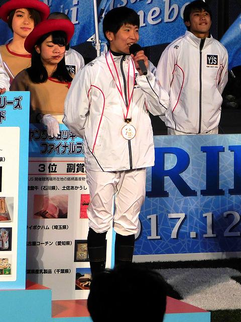 (ここまででだいぶ長くなってしまったのですが、)この後、序盤の数レースの予想をしてからようやく朝食にありつき、その後はレース見たりイベント見たり食べたり飲んだり当然馬券も買ったりと、最終レースまでかなり忙しく過ごしました。ちなみに、今回は場内の何気ない写真は撮る余裕がなかったので、そのあたりは過去の訪問記(平成23年1月5日、平成28年12月24日その1、同その2)をご笑覧いただくとして、以下は、ヤングジョッキーズシリーズファイナルラウンドの様子など、この日ならではだった諸々を。