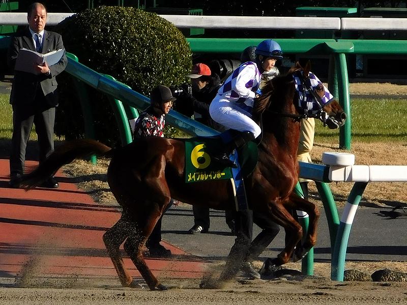 【馬場入りする森裕太郎騎手とメイプルレインボー号】