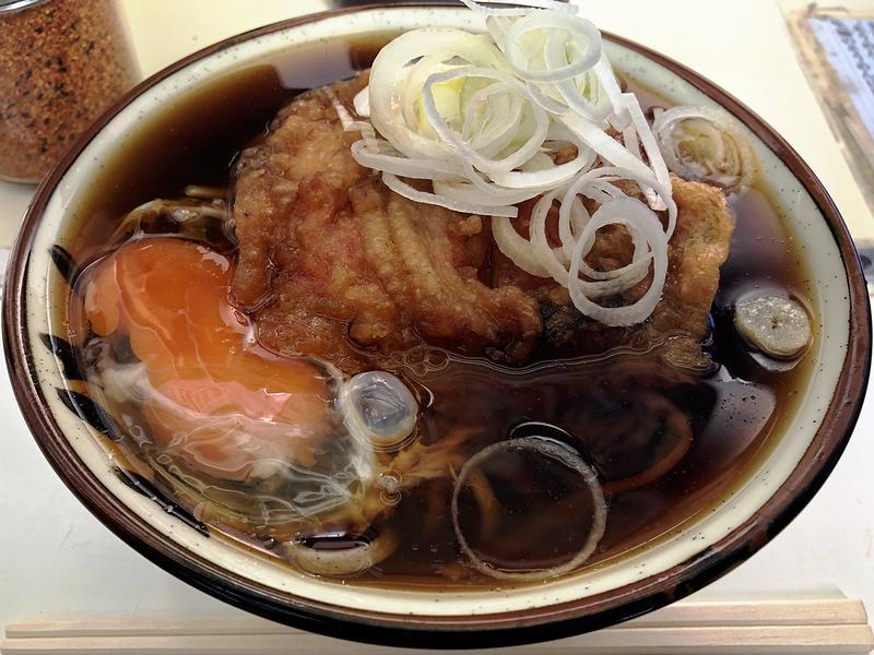所沢駅では、今回の目的のひとつ、1番線ホームにある「狭山そば」へ。かつて、西武鉄道では「狭山そば」という屋号で西武鉄道の関連会社が立ち食いそば・うどん店を出店していたそうなのですが、近年?その大部分が「秩父そば」と屋号(と、経営会社?)が変わり、今や駅のホームでいただける(ここ、大事なところです。)「狭山そば」は、所沢駅にある1店舗だけになってしまったとのこと。しかもその所沢駅のお店にしたって、平成23年に一度閉店したものの、復活を望む声におされて平成25年に復活オープンしたそうで。そこで今回は、写真の特製肉そばに生卵を入れていただいたのですが、ひとことで言うと「美味」。ホームの立ち食いらしい若干ぬるめな温度に、これまたホームの立ち食いらしい濃い目の味付けが決まり、出汁感(カツオの他アゴだしも使用とのこと)もあって旨いツユに、茹で麺ですが蕎麦の香りのするムチモチっとしたソバが合わさり、そしてそこに天かすのコクや、具の豚肉の動物的旨味も加わって、これが、たまりませんでしたね。
