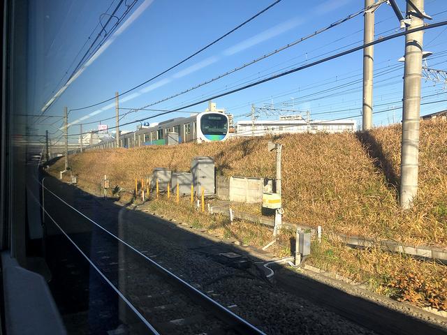 それで冒頭に書いたとおりニューレッドアロー特急小江戸号に乗ろうと、その日どうしても外せなかった仕事だけ済ませて職場を退勤。最初に立てた予定では、宇都宮駅11時36分発の湘南新宿ライン逗子行き快速列車に乗る筈だったのですが、1本早い11時25分発の上野東京ライン小田原行き普通列車に乗車。というのもこの列車で小山駅まで行き、元々乗る予定だった湘南新宿ラインが来る10分の間に、以前いただいた時に好印象だった東北本線(宇都宮線)上りホームの立ち食いそばをいただこうと目論んだのですが、さすがは評判お店、かつ昼時とあって混んでいて、ちょっと無謀な挑戦になりかけたという。でも、時間が無いなりにもしっかりと味わいつついただいたところ、濃いめ、しょっぱめのツユに茹で麺という王道スタイルで、やっぱり旨かっですね。