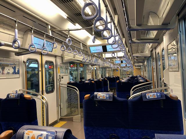 進行方向右側だった指定席に腰を落ち着けると程なく、定刻の13時40分になったのですが、そこから45秒ほど経った頃に発車。車内は、私を含めた乗客が7名と空いており、基本的に列車が空く平日の昼下がりという理由だけでは無く、やはり競合するFライナーの影響もあるのかな、なんて。また、今回の座席は電動車の台車真上付近とあって、抵抗制御式モーターの唸るような回転音を堪能できるのですが、その音は結構勇ましく、私のような物好きならともかく、普通の人にとってはうるさく感じるかもしれません。