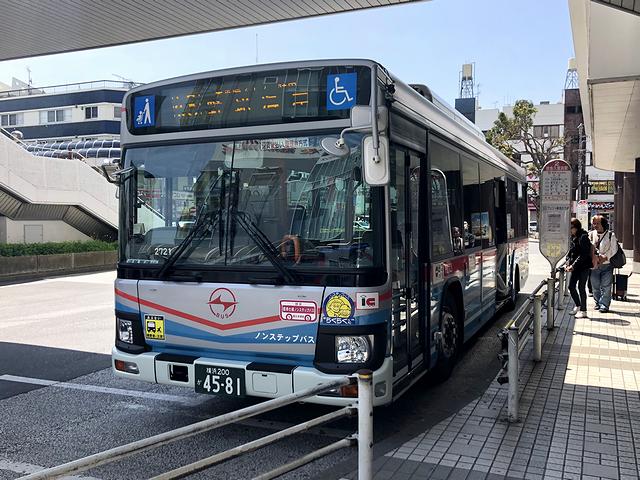 久里浜駅で降りた乗客は、だいたいが京急久里浜駅のある方向に歩いていく様子。そして私も京急久里浜駅まで移動して駅前のバス乗り場へ。東京湾フェリーの久里浜フェリーターミナルへと向かう京急の路線バスは、JR久里浜駅も通るのですが、バスの発車まで時間があったので、始発の久里浜駅まで行ってしまおうかと。もっとも、この判断は間違っていなかったようで、始発で席はほぼほぼ埋まっており、JR久里浜駅からじゃ座れなかったと思われました。