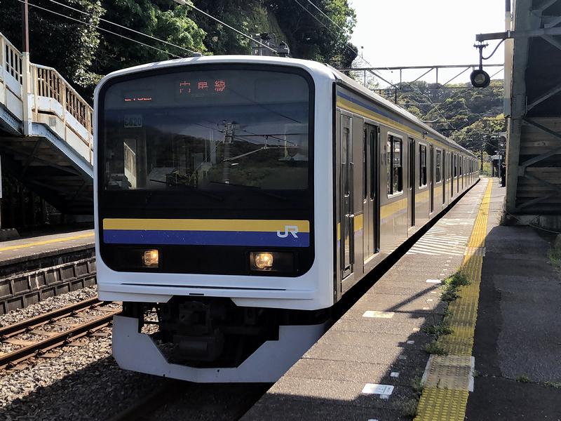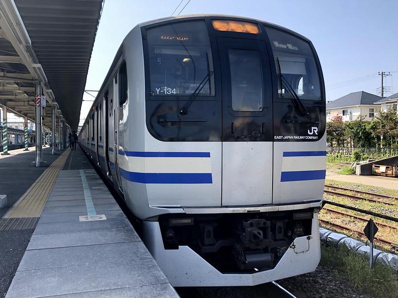 【君津駅に停車中の総武快速線・横須賀線直通久里浜行き快速列車】