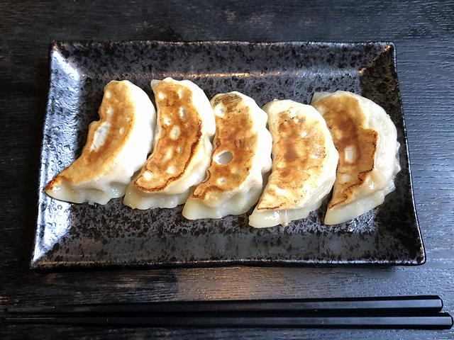 こちらは、一緒にいただいた品。男二人で一皿を突くより、3個(220円)を2皿のほうが良かったと思ったのは注文を済ませてからという。で、同行者とシェアしつついただいたのですが、焼き目のパリッとした皮は厚からず薄からずといった具合で、中の餡は肉っ気もしっかり、味付もしっかりでジューシー。お酢+ラー油だけで美味しくいただけました。