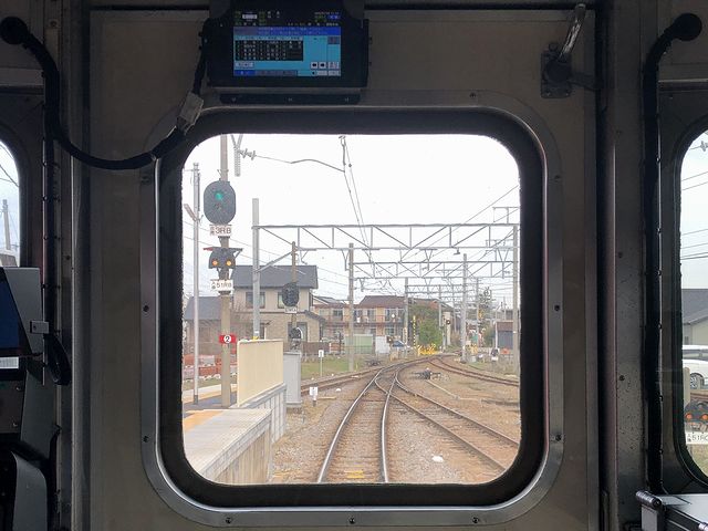 猿渡川を渡ると高架線に登った列車は、高いビルの間に入って刈谷市駅に停車。次の刈谷駅までの区間は複線区間を走り、地上に降りると右にカーブしつつ刈谷駅に進入するのですが、景色からだと勝手口から入るような雰囲気。その刈谷駅で4度目の列車交換を行ってから発車すると、線路は再び単線に戻り、左にカーブしてJR東海道本線を跨いで交差。次の重原駅からは再び複線になり、東海道新幹線を潜(くぐ)って交差。左にきつめのカーブを切れば山線と合流して、定刻の11時43分、海線の列車の終着駅、知立駅へと戻ってきました。