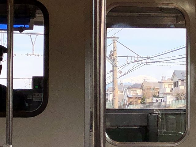 次の善師野駅を出ると、名鉄にしては駅間が長いところに。これは愛岐駅、帷子駅、春里駅の3つを統合して西可児駅を設置したためだそうで。それでこの区間、私が座っている左側の車窓は、小高い地形の上に所々住宅地が見えるものの、展望があまり利かない感じに。一方右側の方が開けた感じがして、分譲地的住宅地も見えます。そして前方には、雪化粧した高い山々が。(方角的に木曽山脈?全く自信なし。)で、そんな中、広見線唯一のトンネルである愛岐トンネルを抜け、車窓にまた住宅が増えたと思ったら西可児駅に到着。