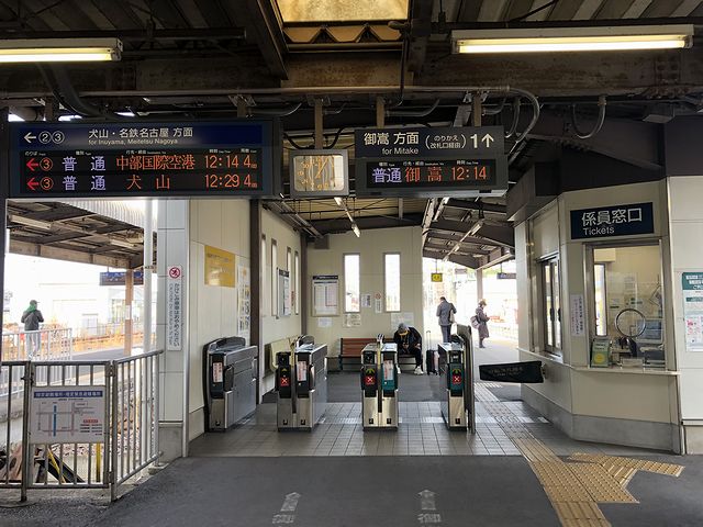 新可児駅では、次の列車まで20分近く待ち合わせ時間が。それでまずは、駅構内のトイレを少々拝借。実はこの頃、先程治まった下腹部のビッグウェーブが再び襲ってきつつあったので、ギリギリセーフという感じで。あとはこの広見線の前に乗った小牧線の更に前、名古屋市営地下鉄の運賃を精算。それでこの新可児駅から先の広見線は、午前10時以降は昨日の蒲郡線のようなワンマン運転になるためか、御嵩行きの列車が発着する1番線には中間改札が設けられているので、改めて名鉄電車全線2DAYフリーきっぷを通してプラットホームへ。