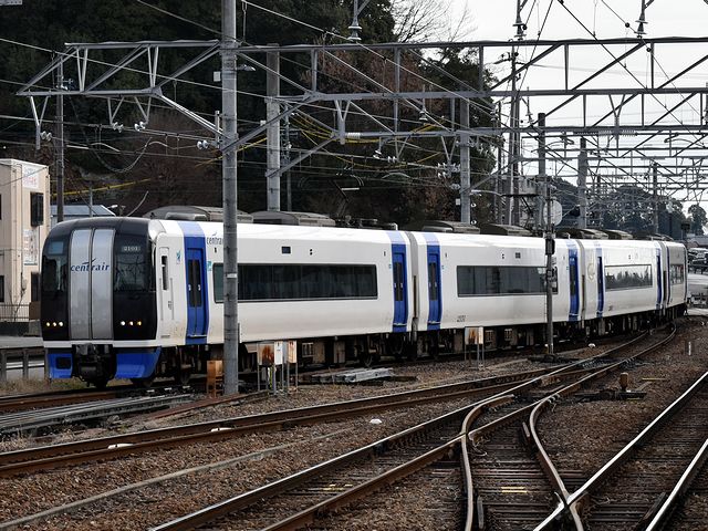 平成17年(2005年)開港予定だった中部国際空港への鉄道アクセスについては、最終的に名鉄が常滑線を延伸して対応することとなったのですが、そのアクセス特急専用車両として平成16年(2004年)に落成したのが、全車特別車特急用の2000系電車。これまでの赤系の塗装からイメージを一新し、白地にブルーの帯という塗装を纏った長さ19.5mの車体に、幅1000mmの両開き客用扉を片側2箇所装備。デッキでは切られた客室内には、空港アクセス車両らしい大型荷物置き場を備え、座席は全席回転式のリクライニングシート。最高速度120km/hとなる走行装置はIGBT素子によるVVVFインバータ制御で、最大の特徴は、名鉄ではこれまで試験的にしか使用されていなかった車体傾斜装置を全面的に採用し、主にカーブの多い常滑線において、曲線通過速度向上によるスピードアップを達成しました。(中部国際空港駅開業後の特急列車を比較した場合、従来型の特急車両が名鉄名古屋駅-中部国際空港間を35,6分で走破するところ、2000系は28分で駆け抜けます。)