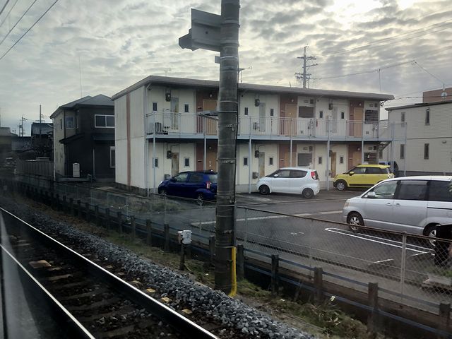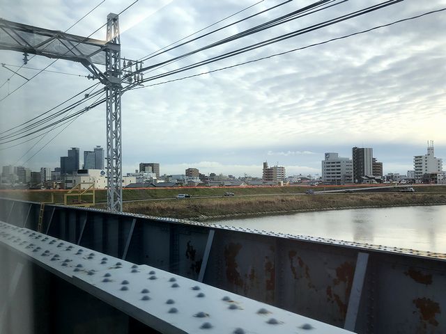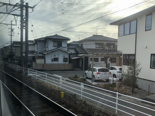 そんな歴史を持つ犬山線ですが、車窓から見える景色、特に序盤は正直なところ少々退屈。先述したように、犬山遊園駅発車直後は住宅地を進み、ところどころに農地や大きな建物が混ざるという感じで続きます。そんな中、犬山駅から約7分で、次の停車駅である江南駅に停車。ここでも乗客はゼロでした。そして江南駅の次は、約5分で岩倉駅に停車。ここでようやく、4号車に3名の乗車がありました。