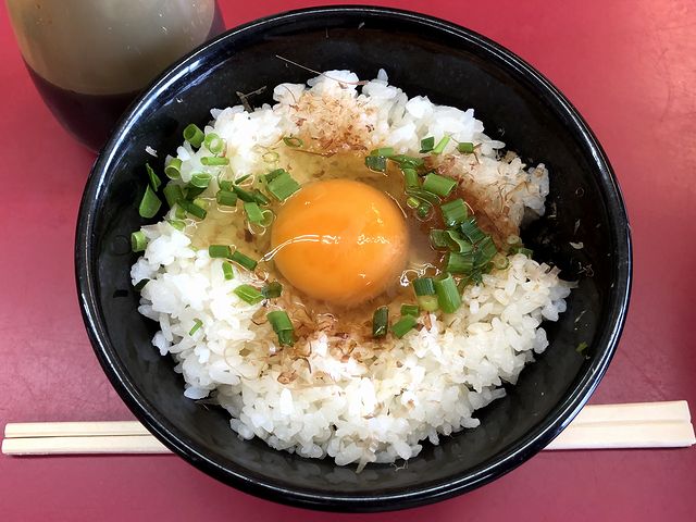 それで、今回は、玉子かけご飯(TKG)とのセットを券売機で購入。ちなみにこのセットだと、単品合計よりも10円安くなるんですね。