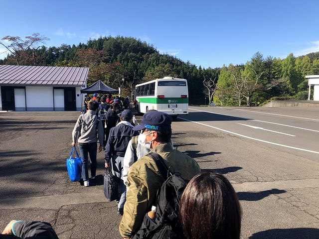 幸い、インフォメーションゲートに比較的近いところにクルマを止めることが出来、早速、体調チェックシートを提出してから入場。ここまでで時刻は8時半近くとなり、内心かなり焦っていたのですが、私も相方も、昨日寒いところに一日居た所為か、かなり足腰に来ていたので、無料のシャトルバス乗り場へ。