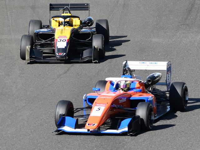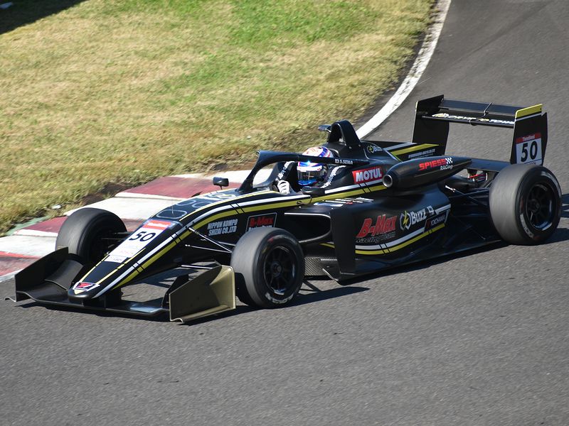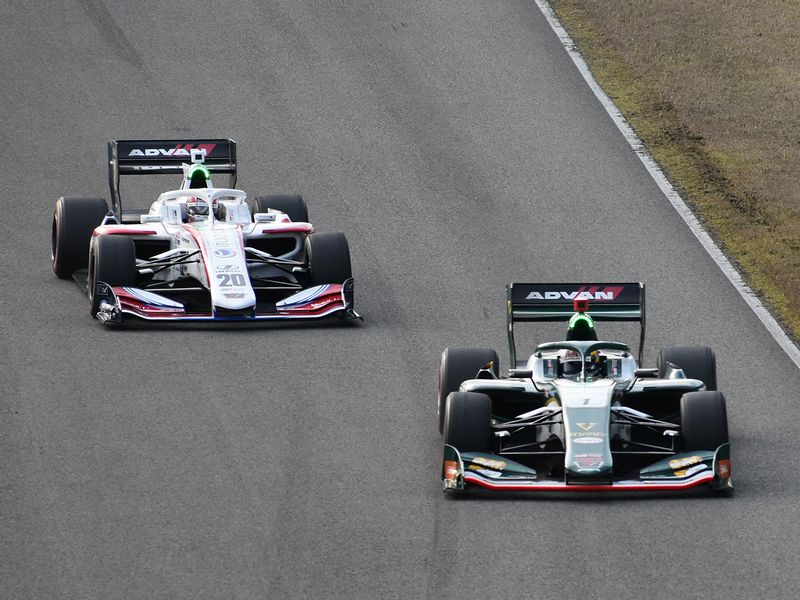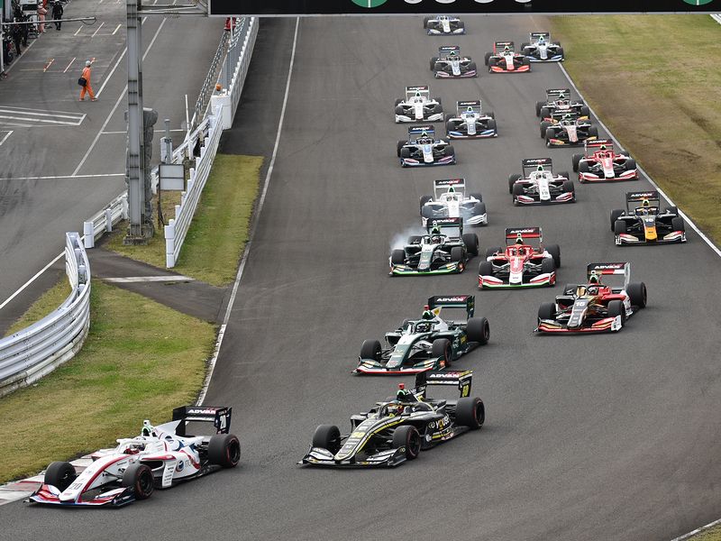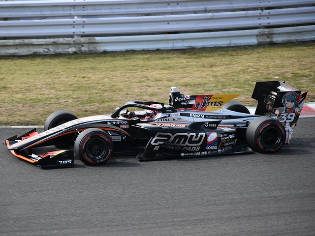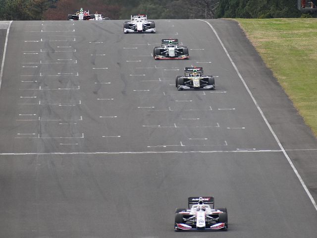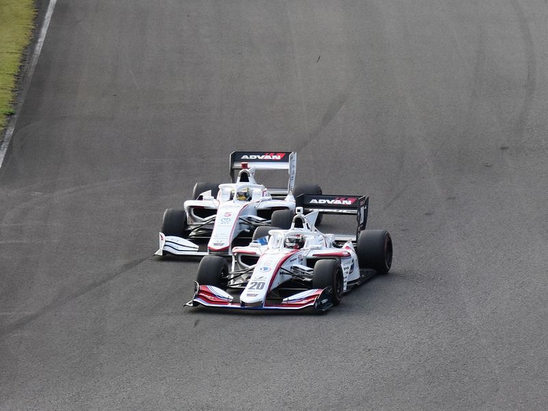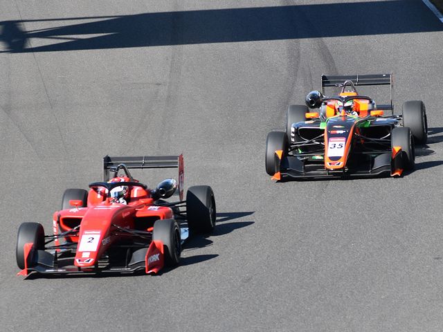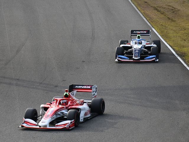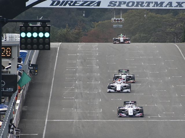 昼食をいただいて少し落ち着いた頃に始まったのが、19周で争われるスーパーフォーミュラ・ライツ第8戦。スーパーフォーミュラの予選は時間が押しましたが、このレースは12時35分の定刻に、フォーメーションラップがスタートしていきました。