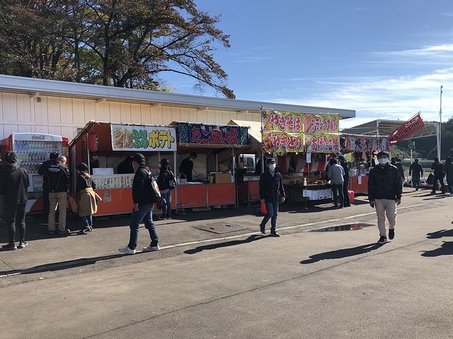 菅生での(パドック付近は別として)飲食のメインと言えるのが、グランドスタンド入り口の広場様のところと、そこから1コーナー方向にかけて並んでいる様々な飲食売店。