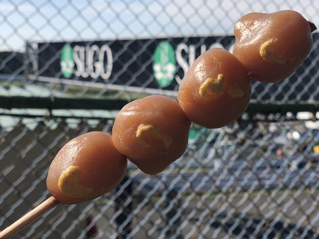 こちらは、広場様のところのコースに向かって左側の一番前でいつも売られている、山形名物の玉こんにゃく。個人的に、菅生に初めて来た30ん年前からのお約束となっている食べ物です。
