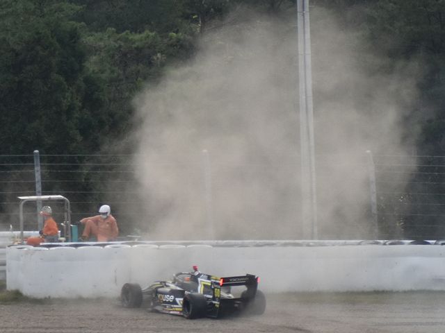 さらにピットアウト直後、焦りがあったのか冷えたタイヤでコントロールを失って、4コーナーを直進。タイヤバリアにクラッシュして、非常に残念なリタイアとなってしまいました。