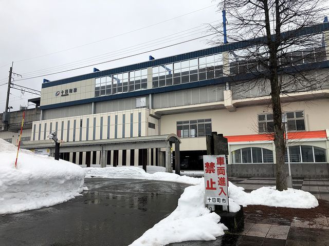 その美佐島駅を発車して少し行くとようやくトンネルを抜け、すぐにしんざ駅に停車。その後ほくほく線は、JR飯山線と交差するための高架線に。十日町の街並みが結構立派だなと思っていたら、すぐに十日町駅に到着。さすがはほくほく線で(多分)乗降客が一番多い駅だけあって、ここでわりと降りる人が多かったです。