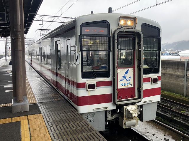 ほくほく線の列車は、快速や後述する超快速など、越後湯沢駅や直江津駅まで乗り入れる列車もあるのですが、普通列車はこの列車のように、律儀にほくほく線内だけを走るものもあるようで。