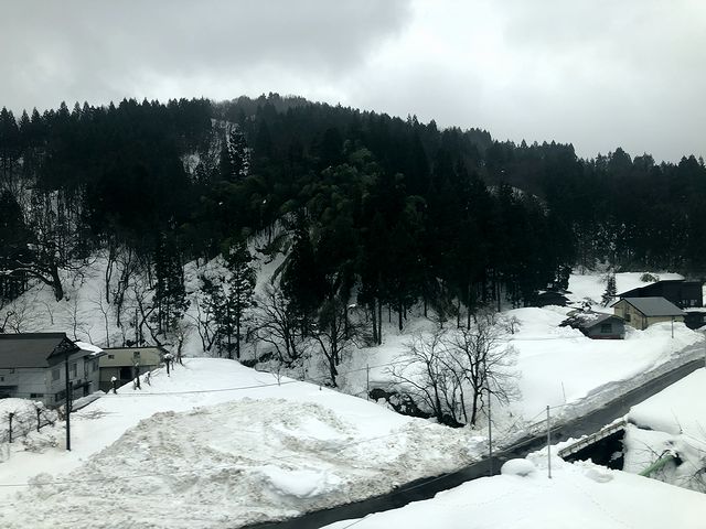 先程とは反対側の席に座って外を眺めるものの、基本的にはトンネルが多く、それ以外も雪に覆われていて同じ印象の景色が流れるなか、虫川大杉駅に停車。