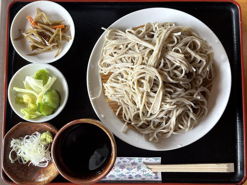それで昼食どうしようかと話になった時、用事の合間で時間が限られていたものの、同行者の一人が以前行った旨い蕎麦屋があるのでそこにしようという流れとなり、反対する理由もなかったので流されるままにというかお昼になって車に揺られるままに連れて行かれたのがこちらのお店。旧馬頭町の街なかを離れて進む際、前を走っていた車もこちらのお店に向かっていたのにはちょっとびっくりしたというか。