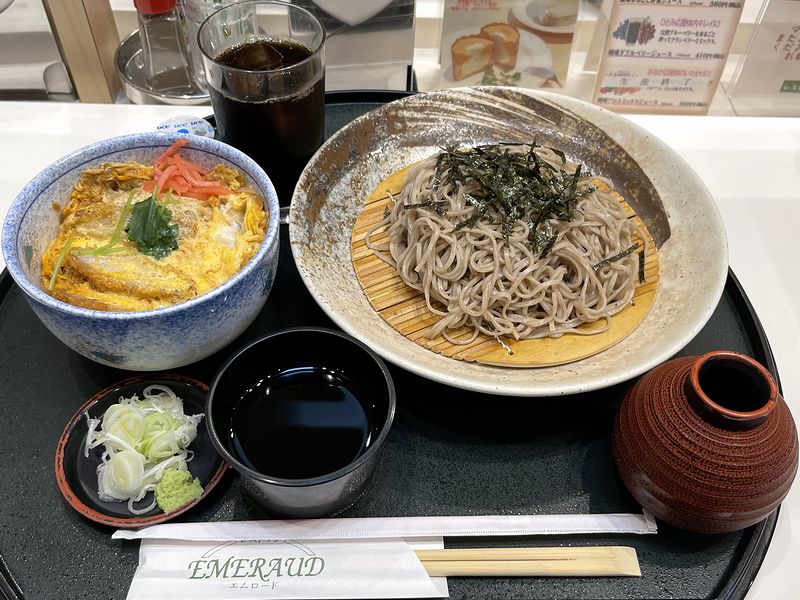 それがこの、ざるそば使用カツ丼付。ちなみに、専用メニューはこれ以外にも和膳(刺身メイン)、生姜焼き、天丼、ヒレカツ丼、スパゲティセットと合計6種類もありますが、その中で2番目にカロリーが高かったりします。