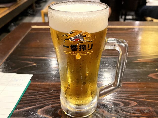 ラーメン食べたあとだったので最初から日本酒でも良かったのですが、この日の暑さにやられていたので生ビールを。