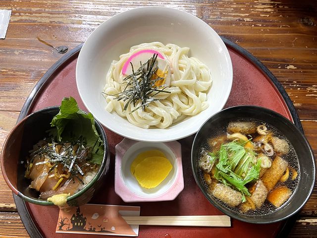 【本日のおすすめセット(とり肉とまいたけのつけ汁うどん+ミニまぐろ丼) 1,000円)】
