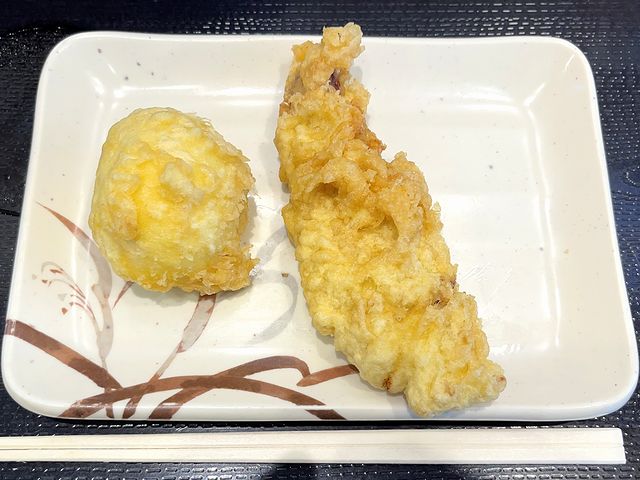 【半熟たまご天 150円 と かしわ天 170円】