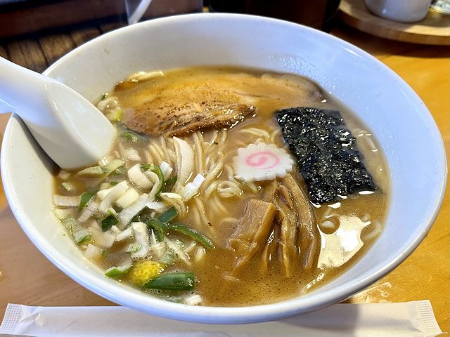 それで登場したら、まず嬉しい驚きが。以前、花の季さんのラーメン類は冬場になると柚子の皮が載せられていたのですが、ある時からそれがなくなってしまったんですよね。個人的に、それをとても残念に思っていたのですが、今回久しぶりに頼んでみたら、それが復活していたというか。こちらの和風豚骨醤油スープって、柚子がめちゃくちゃ合うんです。