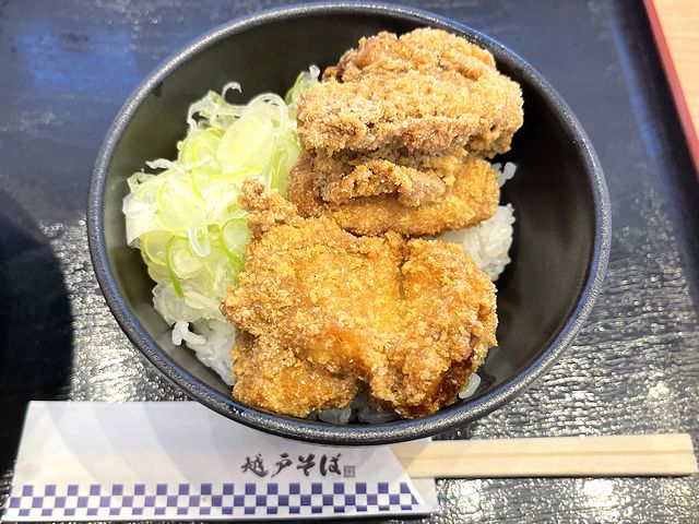 で、こ飯の上には、衣サックリクリスピー、中のお肉はプリプリジューシーで、味加減もバッチリなからあげが2個。これだけで満足なのですが、多めに添えられた晒しネギ、そしてマヨネーズがちょうどいい味変になって、また。