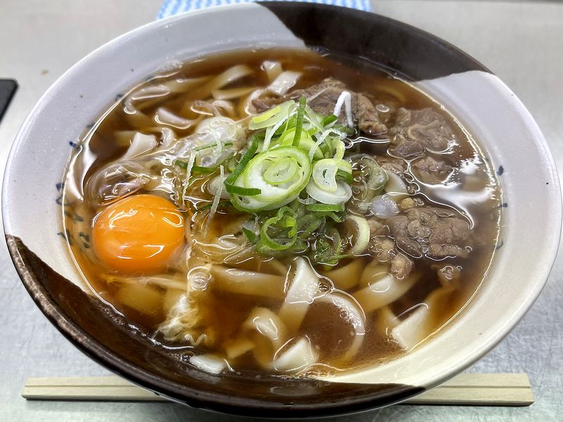 それがこの、牛肉(玉子入り)きしめん。さながら肉うどんのきしめんバージョンといったところでしょうか。
