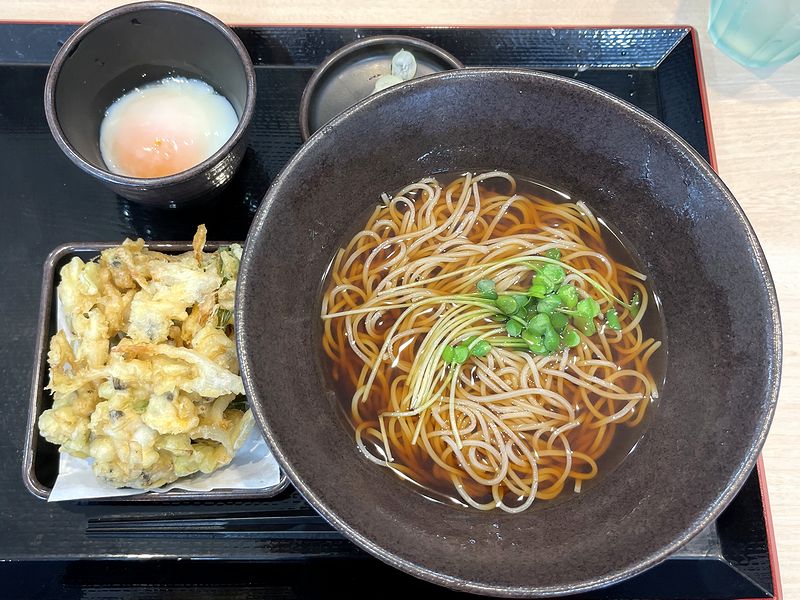 【ギッシリあさりと葱のかきあげそば(温) 670円 + 温泉玉子 100円】