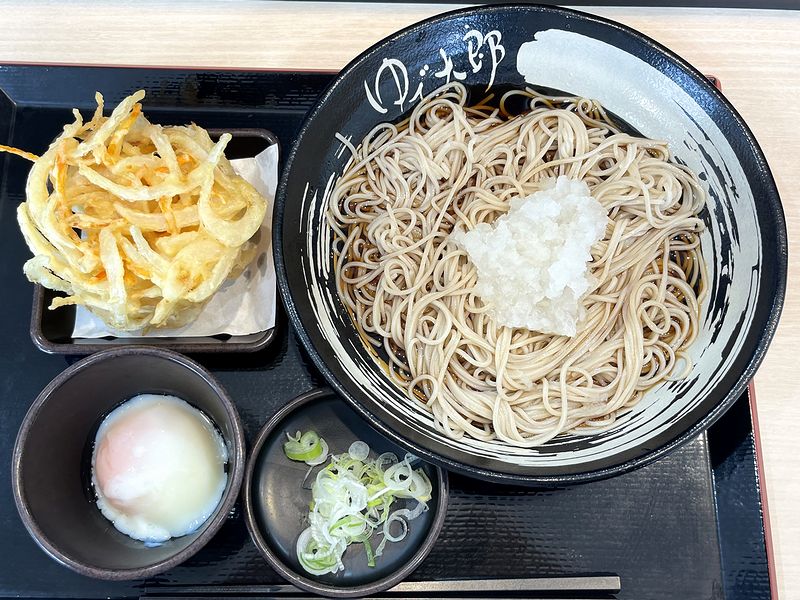 【朝そば(鬼おろし・冷) 420円 + 温泉玉子 100円】
