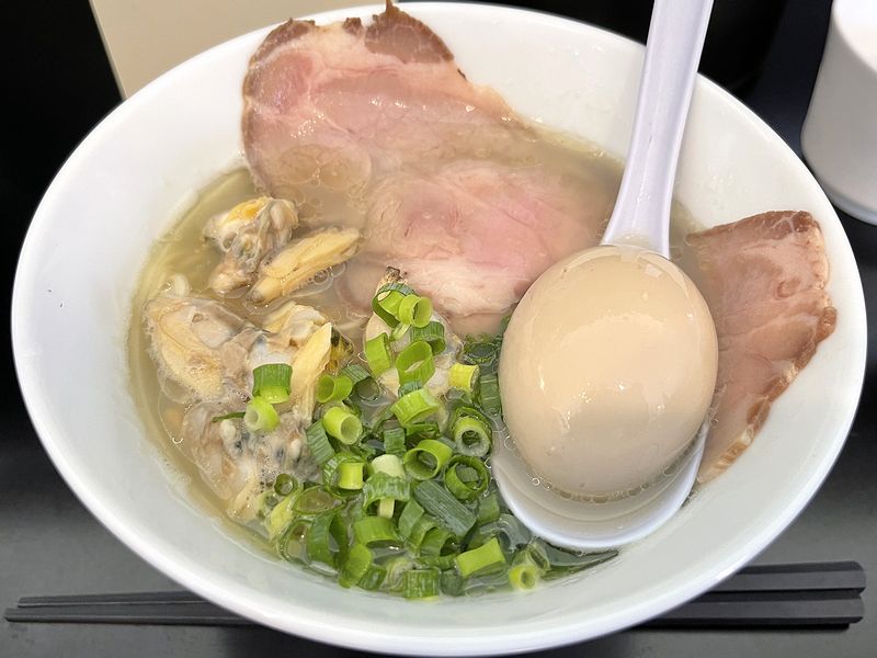 【貝出汁中華そば 750円 + 焼豚OPTION 100円 + 煮玉子OPTION 100円】