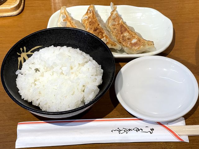 また餃子は、こちらのお店で通常出されている(5個300円)ものと同じでしょうか。薄皮の中の餡は、お肉たっぷりでジューシー。これで半ライスを半分くらいいったあとは、残りをスープに投入して締めれば、また。