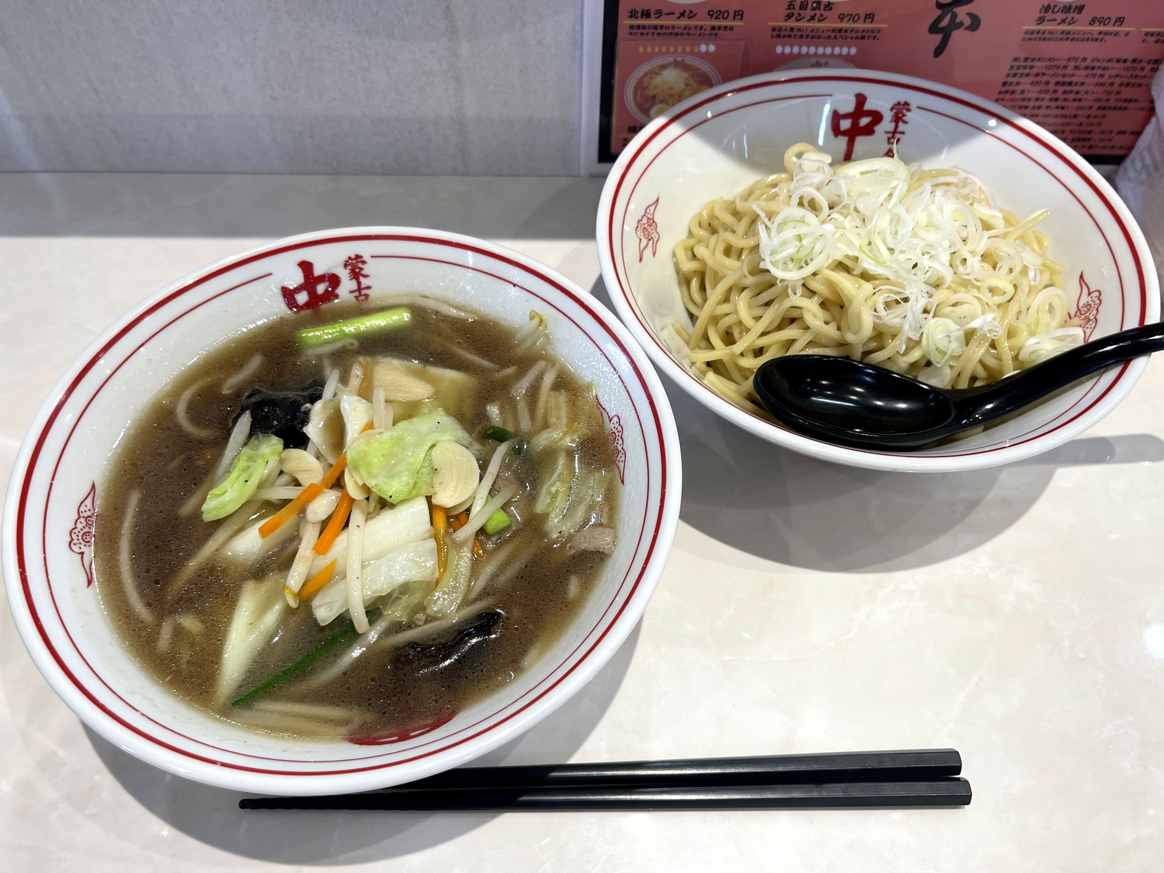 それで今回のメインは、中本さんでは珍しい辛くない(非辛)メニューの中から、冷し醤油タンメンを。というのも、この日は気温が摂氏30度を超えた酷暑だったため、まずは中本だと「冷し」と呼ばれるつけ麺が良いとなり、更に、最近辛さに対する耐性がとみに落ちている自覚があったので、非辛メニューの中からこちらの品を。ちなみに、冷し醤油タンメン自体は中本の伝統的メニューの一つで、中本で辛いメニューを極めると、逆に非辛メニューの良さに目覚める人も多いのだとか。